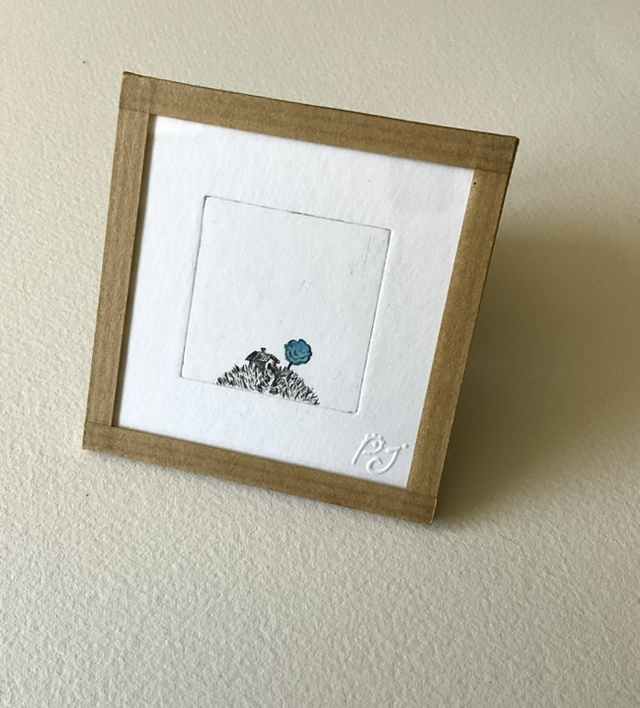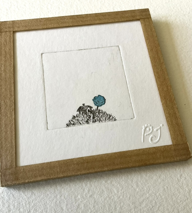 Gravure en taille douce sur plexiglas rehaussée à l’encre acrylique encadrée sous verre bordé papier